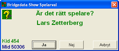 När man valt den "gröna" siffran så frågar programmet om det var rätt person. Man kan klicka på "Ja"-rutan, använda "Enter"-knappen eller svara med "J"-knappen |
